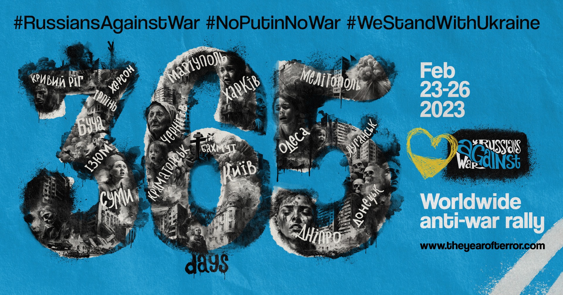 Od roku trwa zmasowana inwazja Rosji na Ukrainę: zginęło ponad 7 tysięcy cywilów, a ponad 15 milionów ludzi zostało zmuszonych do ucieczki ze swoich domów i szukania azylu. W tych dniach setki Rosjan na całym świecie wyrażają poparcie i solidarność z Ukrainą. Poznań dołączy do wieców 24 lutego.